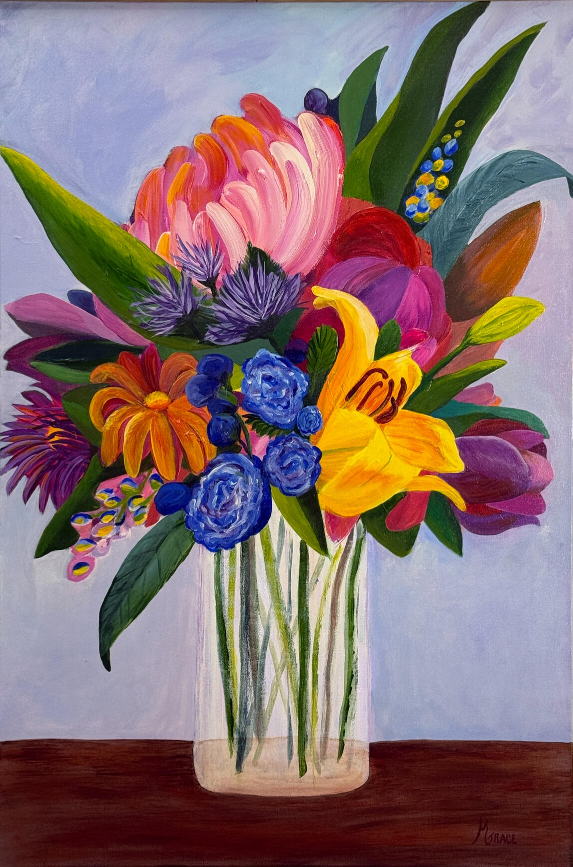 24 x 36 x 1 1/2In Celebrate, flowers arranged in a vase become an expression of joy and presence. Vibrant color and layered brushwork transform the still life into a moment of beauty and celebration.